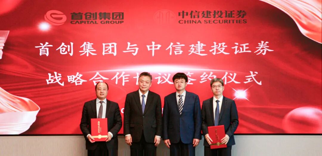 10月21日,首创集团与中信建投证券正式签署战略合作协议。首创集团党委副书记、总经理秘勇与中信建投证券党委副书记、总经理金剑华出席签约仪式。首创集团党委常委、总会计师李静源与中信建投证券执行委员会委员、董事会秘书、投行委主任刘乃生代表双方签署协议。